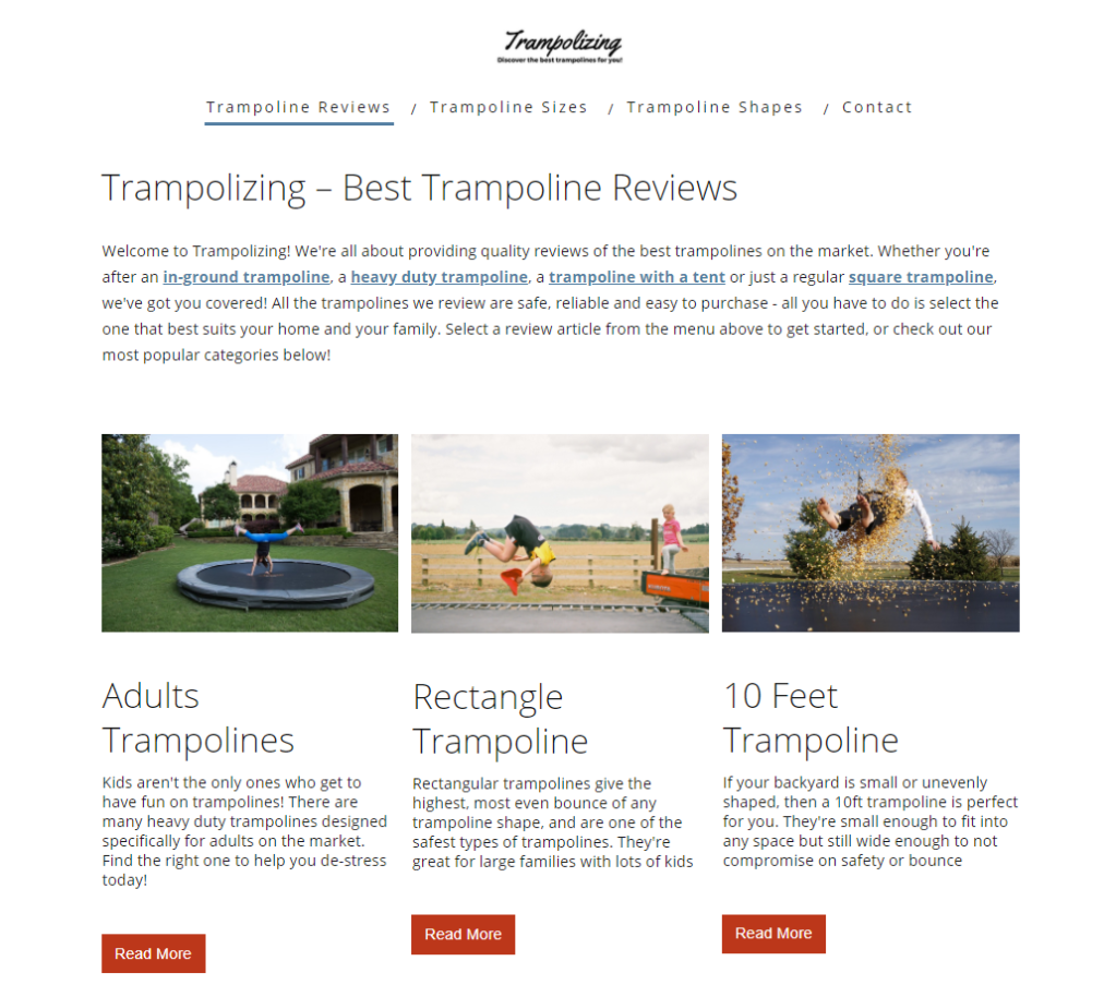Another venture I acquired in November 2020 is Trampolizing.com – Best Trampoline Reviews & Buying Guide – Trampolizing. It’s a pure Affiliate Marketing acquisition play in niche search terms in the trampoline product space and at the time of acquisition, was driving ~1,000 organic views every month. Best of all, this blog probably takes me ~2-3 hours to run every month.